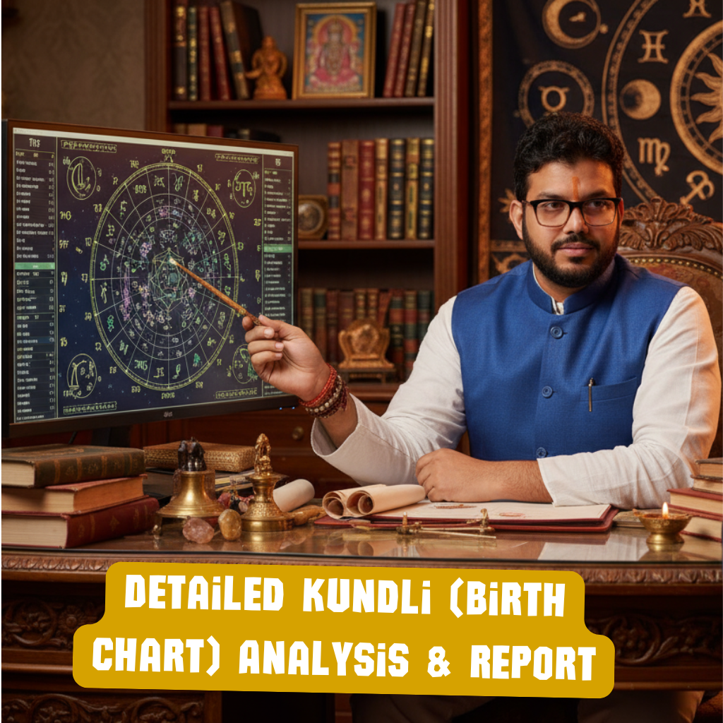Unlock the full potential of your cosmic blueprint with our Detailed Kundli Analysis and Report, expertly prepared by Taxak. This premium service provides a complete Vedic birth chart assessment, revealing deep insights into your personality, career, relationships, health, and spiritual path.